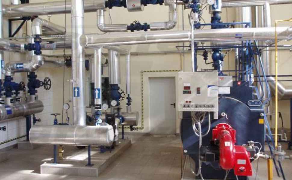 Delivery and installation of a complex boiler plant, consisting of two boilers (with a capacity of 1 000 kW each, a pressure of 10 bar, GZ-50 natural gas-fired), domestic hot water production system, feed water tank, and water purification system. Heating water temperature is 140°C.