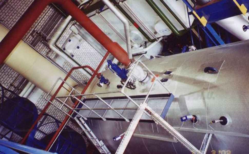 The steam boiler plant, with a capacity of 10 000 kg/h, a pressure of 10 bar, heavy fuel oil-fired, for KNAUF Company.