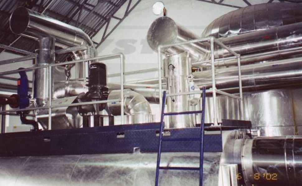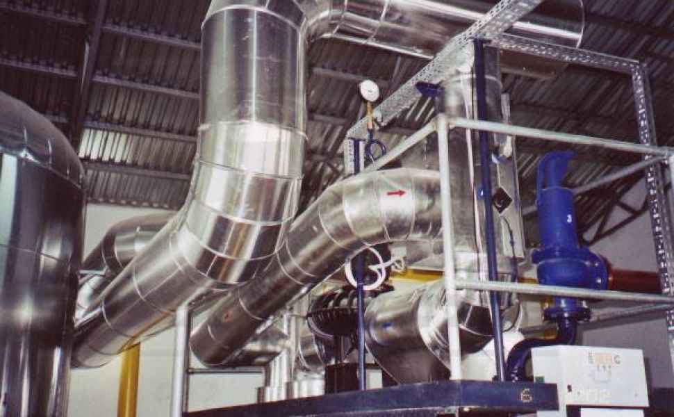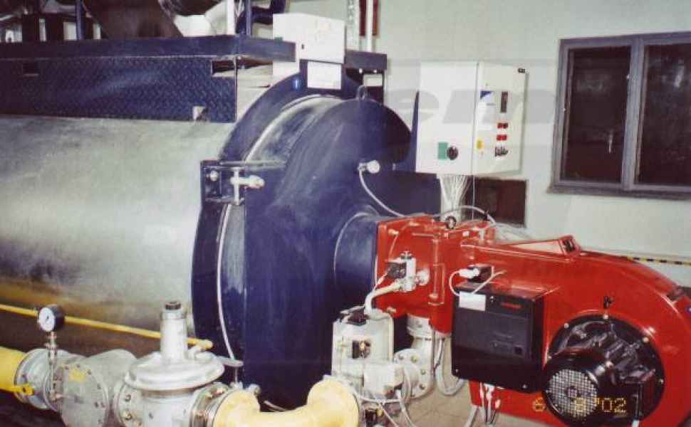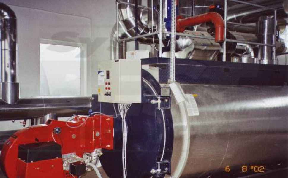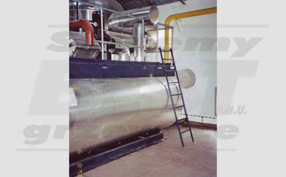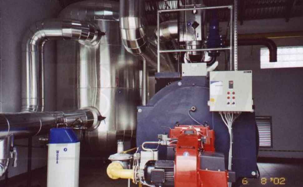 Kotłownia grzewcza dla Gospodarstwa Ogrodniczego o mocy 3 700 kW opalana gazem ziemnym GZ-50, wyposażona w sprzęgło hydrauliczne o zwiększonej pojemności wodnej w celu minimalizacji wpływu szybkich zmian w zapotrzebowaniu ciepła ogrzewanego obiektu, na bezpieczeństwo pracy kotła.