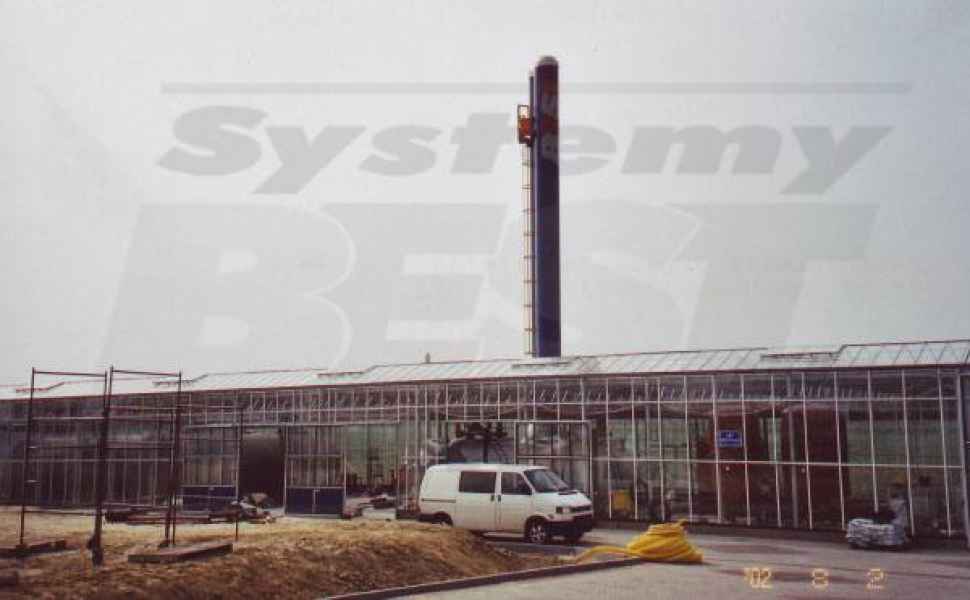 Moc kotłowni 13 000 kW (2 x 6 500 kW) z możliwością rozbudowy o kolejny kocioł o mocy 6 500 kW. Kominy samonośne o wysokości 20 m oznakowane logiem firmy BEST.