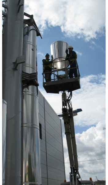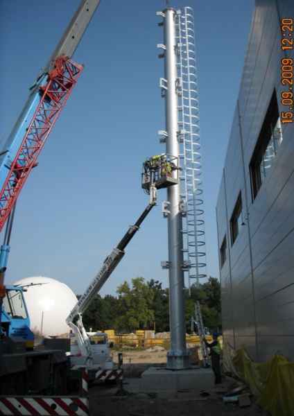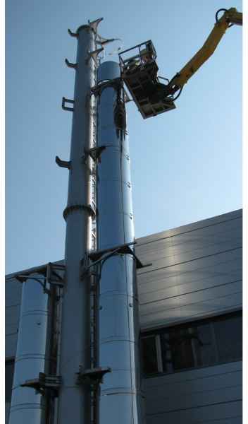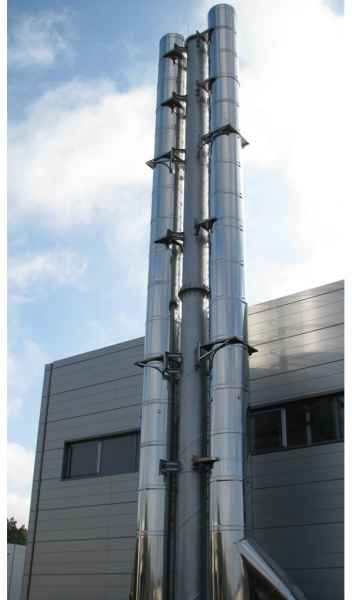 Dla nowych kotłów przewidziano dwuścienne przewody kominowe ze stali nierdzewnej o wysokości 17 m nad poziomem terenu.