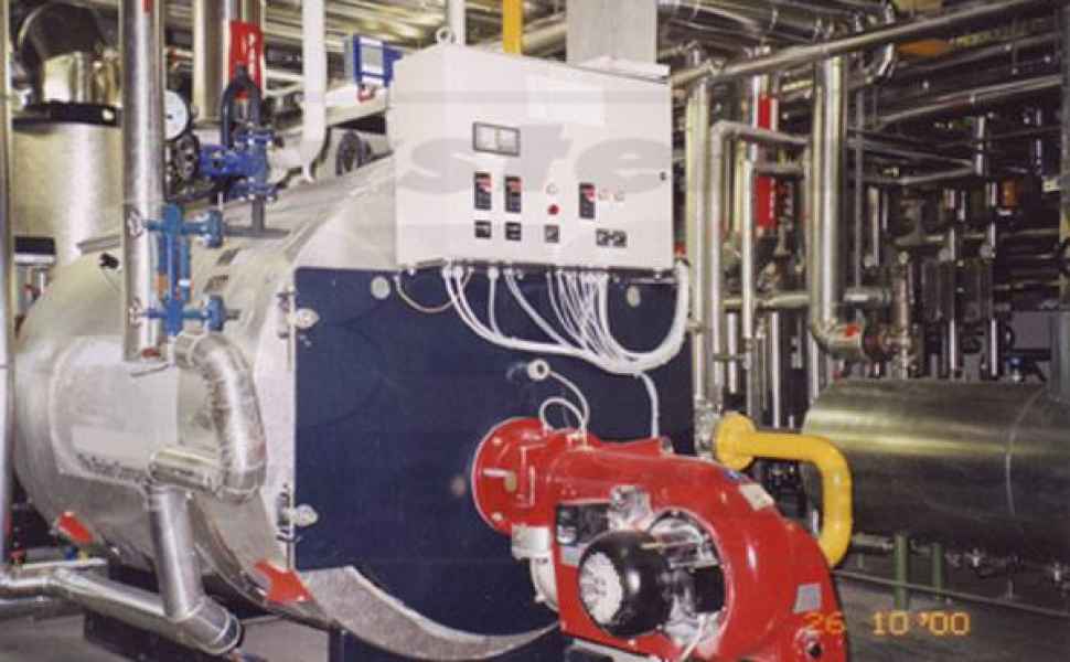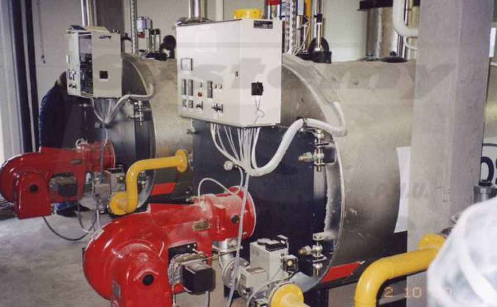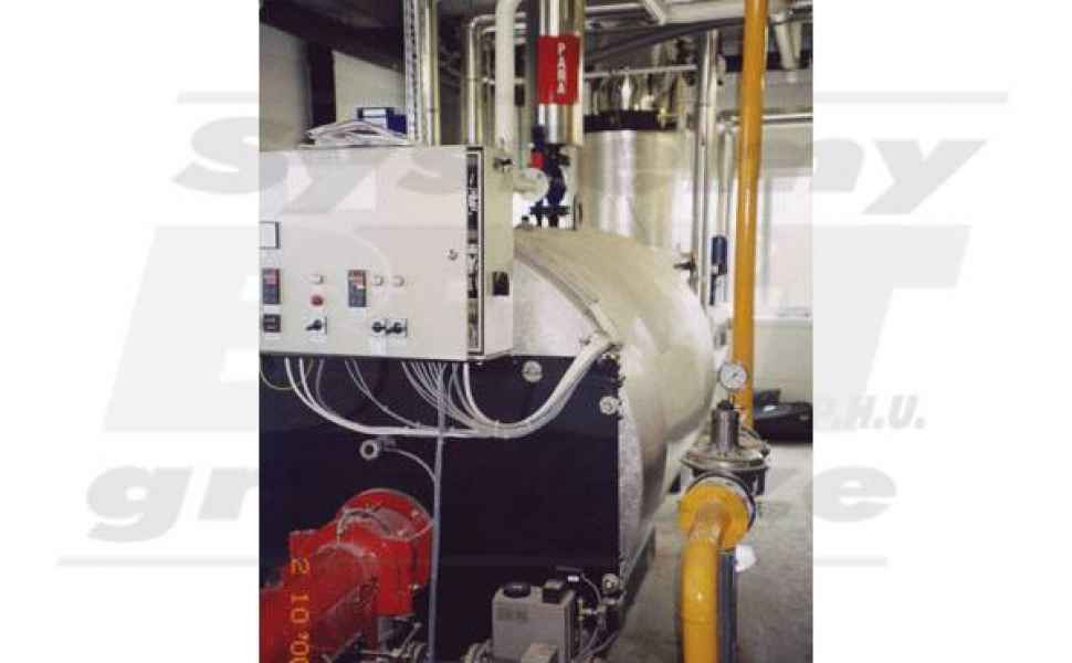 Kotłownia dla zakładu HIESTAND o łącznej wydajności 2 500 kg/h, opalana gazem ziemnym GZ-50.