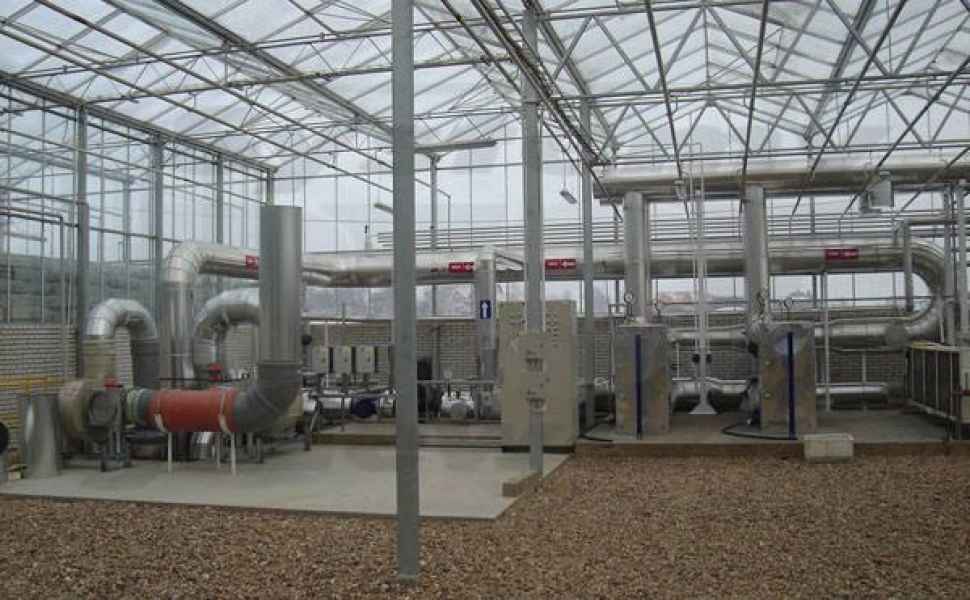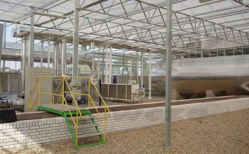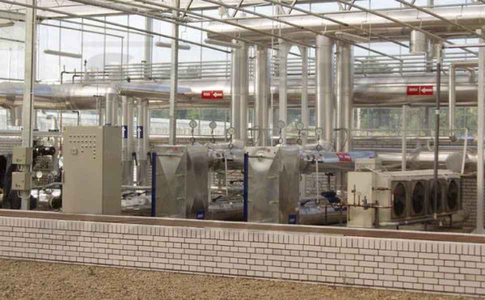 Sterownik swobodnie programowalny zapewnił pełne dostosowanie wykonanego układu do specyfiki rozbioru ciepła w obiekcie szklarniowym, oraz do wymagań EC. Przyrost objętości wody w układzie grzewczym przejmuje otwarte naczynie wzbiorcze o pojemności całkowitej 100 m3.